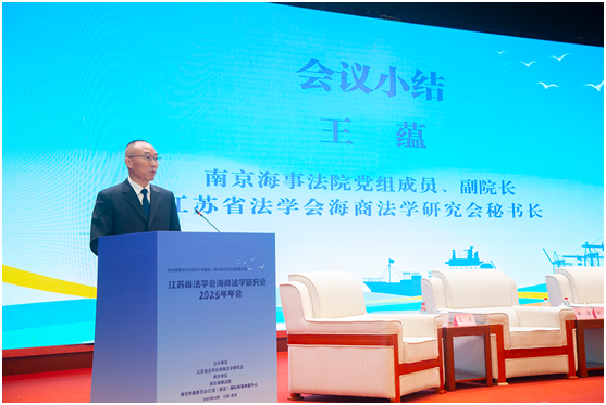 江苏省法学会海商法学研究会秘书长、南京海事法院党组成员、副院长王蕴作会议小结。