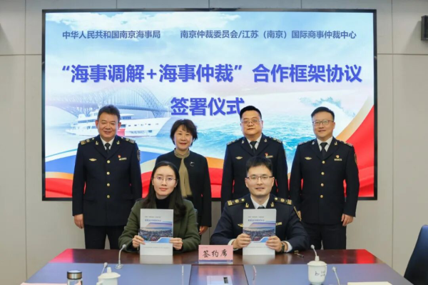 为健全完善海事海商纠纷多元化解工作机制,充分发挥海事局和仲裁机构的优势,江苏海事局与南京仲裁委携手构建海事海商纠纷多元化解机制,指导南京海事局依托南京海事海商公益法律服务中心、南京国际航运仲裁院两大平台,创新建立“调解优先、仲裁兜底、执行联动”的递进式解纷机制,打造“一站式” 海事海商法律服务体系,通过组织联建、业务协同、规则共建等举措,不断提升南京在海事仲裁领域的影响力,营造法治化、国际化、便利化的营商环境。