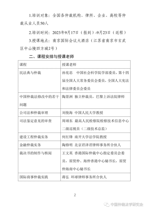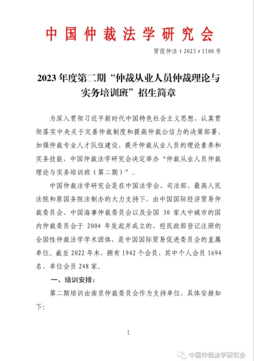 2023年度第二期"仲裁从业人员仲裁理论与实务培训班"招生简章