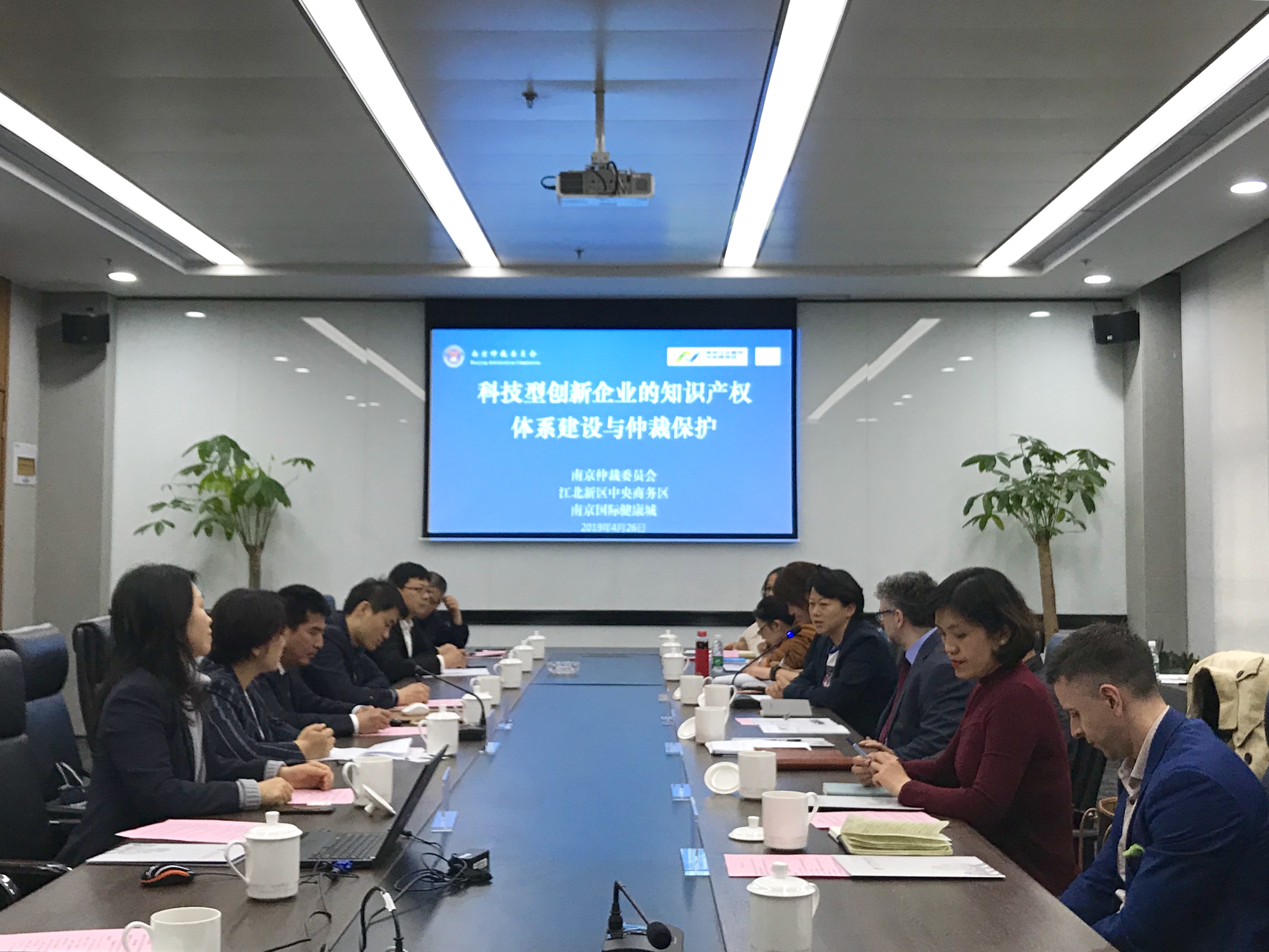 我委仲裁员、原南京市中级人民法院知识产权庭审判长梁永宏,围绕“科技型创新企业知识产权体系建设”,结合其审判实务及仲裁员办案经验,在讲述了知识产权对企业发展的重要作用的基础上,深入介绍了专利、商标、著作权以及商业秘密在企业中的管理和运用。我办立案和发展部负责人王莉以“仲裁——知识经济时代的理性选择”为题,介绍了知识产权仲裁在处理纠纷中的优势,并对知识产权仲裁应注意的事项进行了说明。