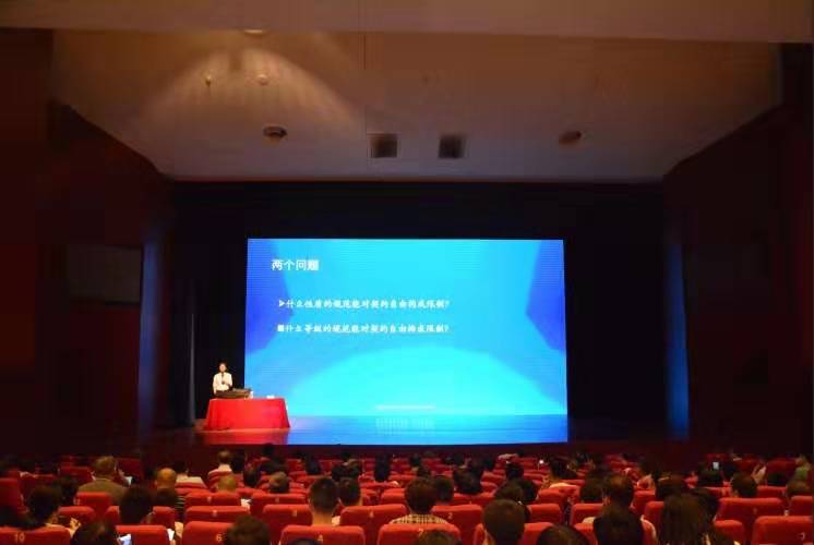 上午,朱教授围绕两个问题“什么性质的规范能对契约自由构成限制,什么等级的规范能对契约自由构成限制”,结合部分司法裁判案例,重点讲述了合同效力的评判规则和内在的法理逻辑,对司法实践困境提出建议和解决之道。朱教授严谨而不失幽默的讲课风格赢得了与会人员的阵阵掌声和高度赞誉。