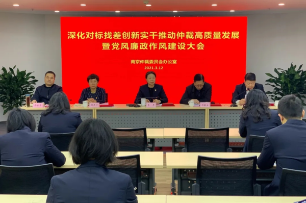 3月12日上午,南京仲裁委员会办公室召深化对标找差创新实干推动仲裁高质量发展暨党风廉政作风建设大会。市作风建设第四监督组组长刘新安、市纪委监委派驻市公安局纪检监察组副组俞东华应邀参加了会议。