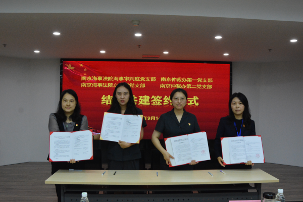 在已经签署共建协议单位的见证下,南京仲裁办第一党支部、第二党支部分别与南京海事法院海事审判庭党支部、立案庭党支部签署共建协议。共建支部将在党建与业务的共学共建上持续发力,组织党员互学互助,提升党建工作水平,打造党建品牌,共创先进党支部;在业务方面,共聚解纷合力,提升海事司法与仲裁影响力。