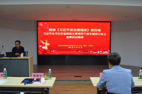 南京市委党校市情研究中心主任、王辉龙教授结合习近平总书记在省部级主要领导干部专题研讨班上重要讲话精神,围绕《习近平谈治国理政》第四卷出版的意义、全书的结构脉络和思想内涵、如何在实践中学懂弄通《习近平谈治国理政》第四卷,深入领会习近平新时代中国特色社会主义思想的精髓要义,进行了全面系统的解读辅导。