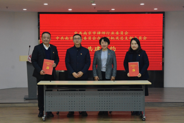 南京市律师行业党委与南京仲裁委员会党总支签订了结对共建协议书,双方就深入学习贯彻习近平新时代中国特色社会主义思想,强化政治引领,凝聚基层党支部战斗合力,探索共促律师行业和仲裁机构融合高质量发展,达成了共建协议。