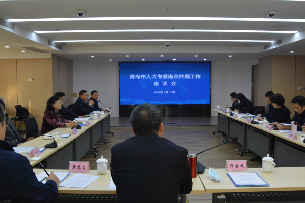 2023年2月15日下午,青岛市人大监察和司法委员会主任王锦妹、副主任魏文选一行到访南京仲裁委员会考察调研南京仲裁工作,南京市人大监察司法委副主任嵇东方陪同考察。来宾们参观了办公场所并进行了座谈交流。