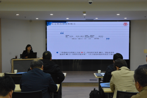 案件承办一部负责人于丽玲以“《南京仲裁委员会裁决书制作规范》的解读”为题,分享了不同类型仲裁文书的写作要求,重点介绍了仲裁裁决书的基本结构、起草裁决时需要注意的事项及常见问题。