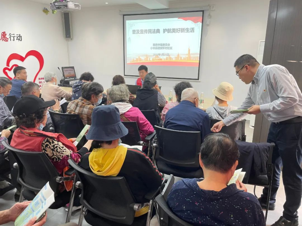 国浩律师(南京)事务所尚子煜律师用通俗易懂的语言介绍了《民法典》中有关相邻关系的规定,同时结合现实案例,对与居民生活息息相关的相邻关系问题进行讲解。我办机关党总支宣传委员王传柱介绍了仲裁的优势和特点,如何运用仲裁保护合法权益。活动结束后,与会社工和居民纷纷点赞,希望今后能经常送法上门。