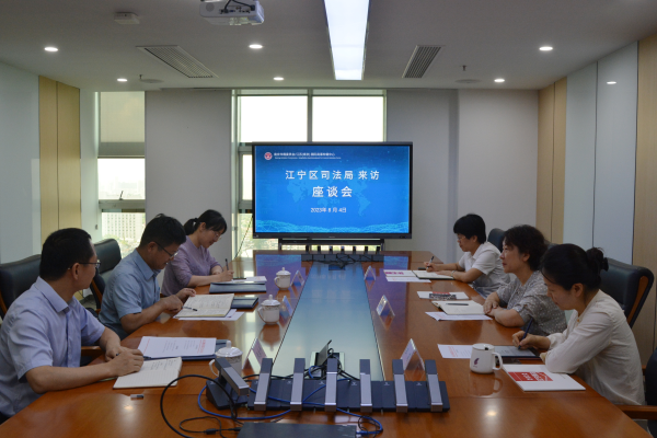 8月4日下午,江宁区司法局党组书记、局长朱同福一行来访南京仲裁办,南京仲裁办党组书记、主任顾燕宁参加了座谈。