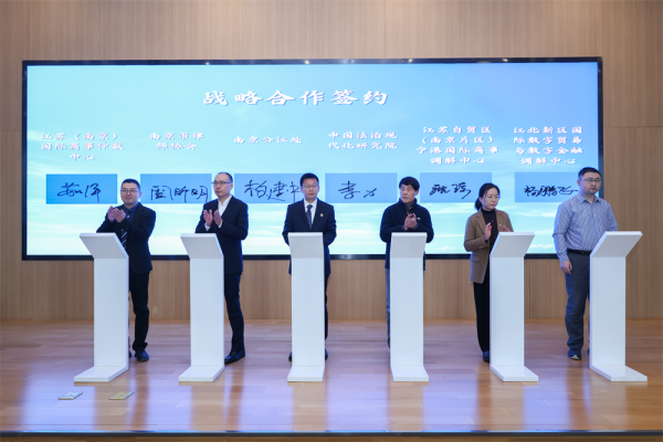同时,南京仲裁委分别与市司法局、中国国际贸易促进委员会南京市分会、江北新区人民法院、江北新区综治局、南京公证处、中国法治现代化研究院、市律协、江苏自贸区(南京片区)宁港国际商事调解中心、江北新区国际数字贸易与数字金融调解中心等机构签订战略合作协议,旨在集聚涉外审判、公证、调解、法律查明等法律资源,整合各方优势,打造“涉外法治综合服务平台”。