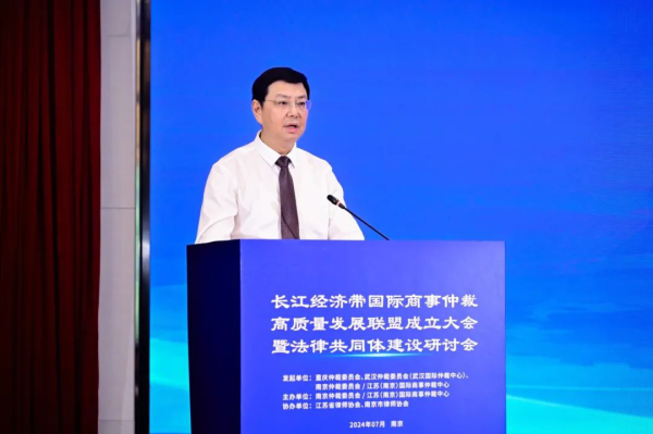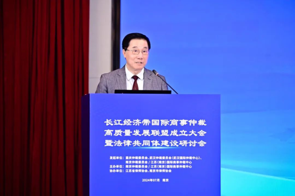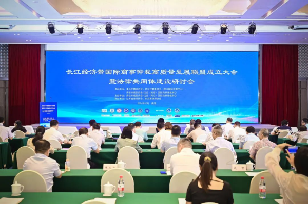 为深入贯彻落实习近平总书记关于进一步推动长江经济带高质量发展及关于加强涉外法治建设的重要讲话精神,加快构建区域一体化仲裁法律服务体系,实现资源共享与互利共赢,共同推动长江经济带涉外仲裁发展,7月13日,由南京仲裁委员会/江苏(南京)国际商事仲裁中心主办,江苏省律师协会、南京市律师协会协办,重庆仲裁委员会、武汉仲裁委员会(武汉国际仲裁中心)、南京仲裁委员会/江苏(南京)国际商事仲裁中心三家单位牵头发起的“长江经济带国际商事仲裁高质量发展联盟成立大会暨法律共同体建设研讨会”在南京成功举办。