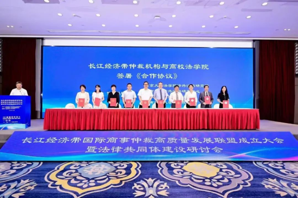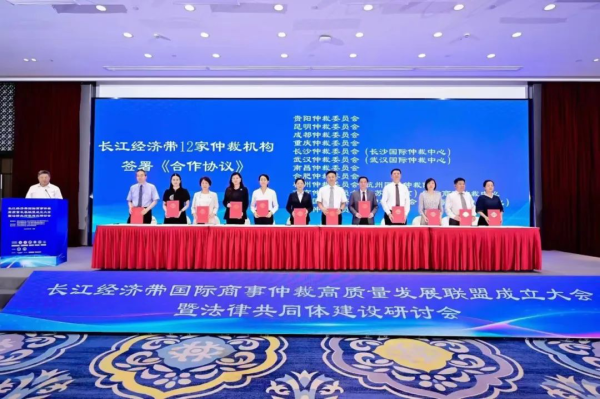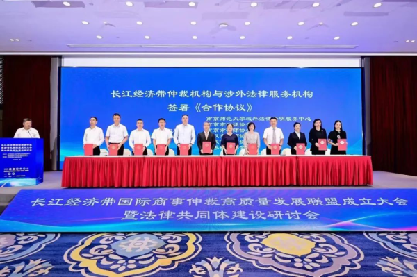 长江经济带12家仲裁机构共同签署《合作协议》,并与武汉大学、西南政法大学、南京大学、东南大学4家高校法学院,以及南京市公证协会、南京市律师协会、武汉市律师协会、重庆市律师协会、南京师范大学域外法律查明服务中心、江苏船东协会6家涉外法律服务机构达成合作协议。系列合作签约,是长江经济带区域内法律共同体凝聚法治共识与合作共识的工作成果,是构建区域一体化仲裁法律服务体系的重要举措,必将进一步推动各方开展更加深入、更加全面的交流与协作,为打造长江经济带国际商事仲裁高地贡献更多智慧和力量。