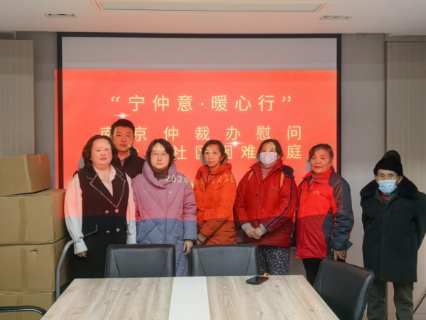 新春将至,温情先行。为扎实推进“双结对、双促进”工作,切实把温暖送到群众心坎上,2026年1月26日,南京仲裁办党总支前往钟阜路、五台山结对共建社区,开展“宁仲意·暖心行”节前慰问活动,以实际行动践行初心使命、传递仲裁温情,为困难群众送去节日的关怀与美好祝福。